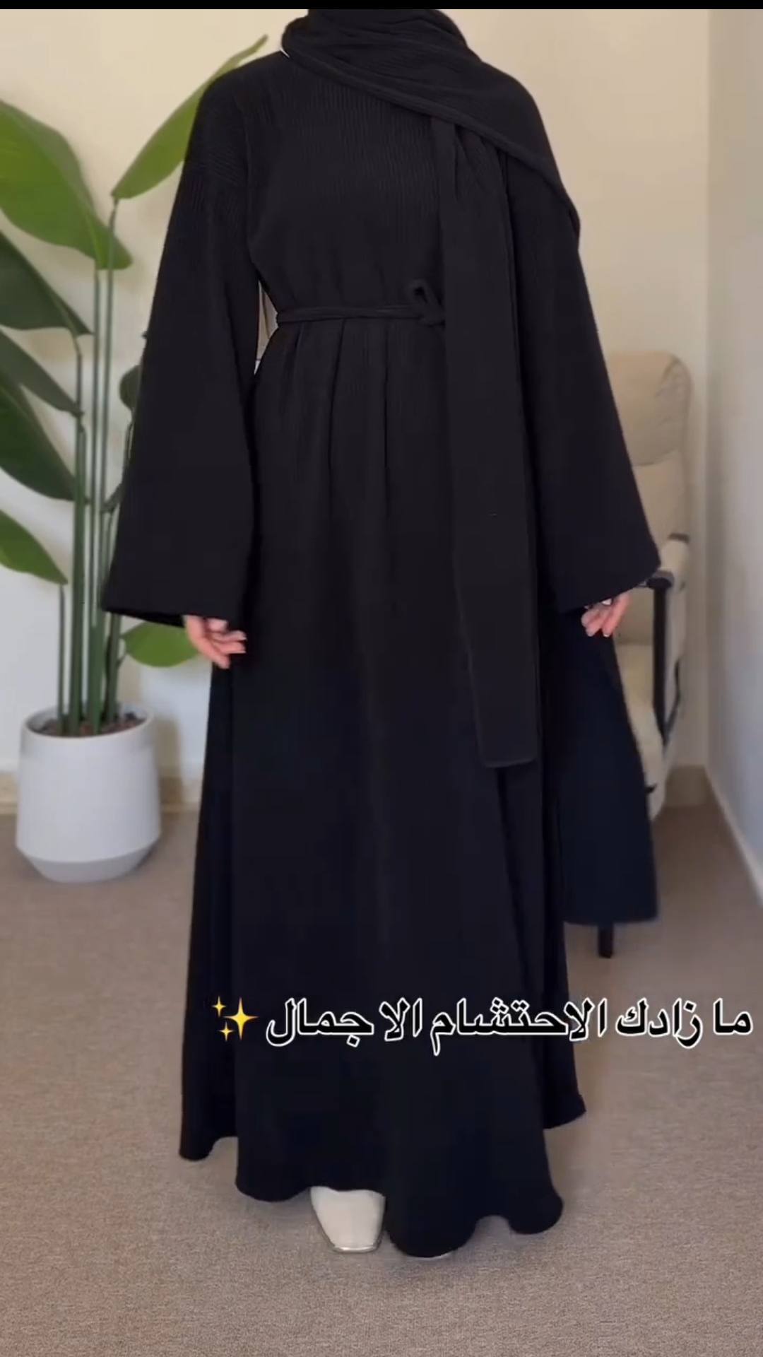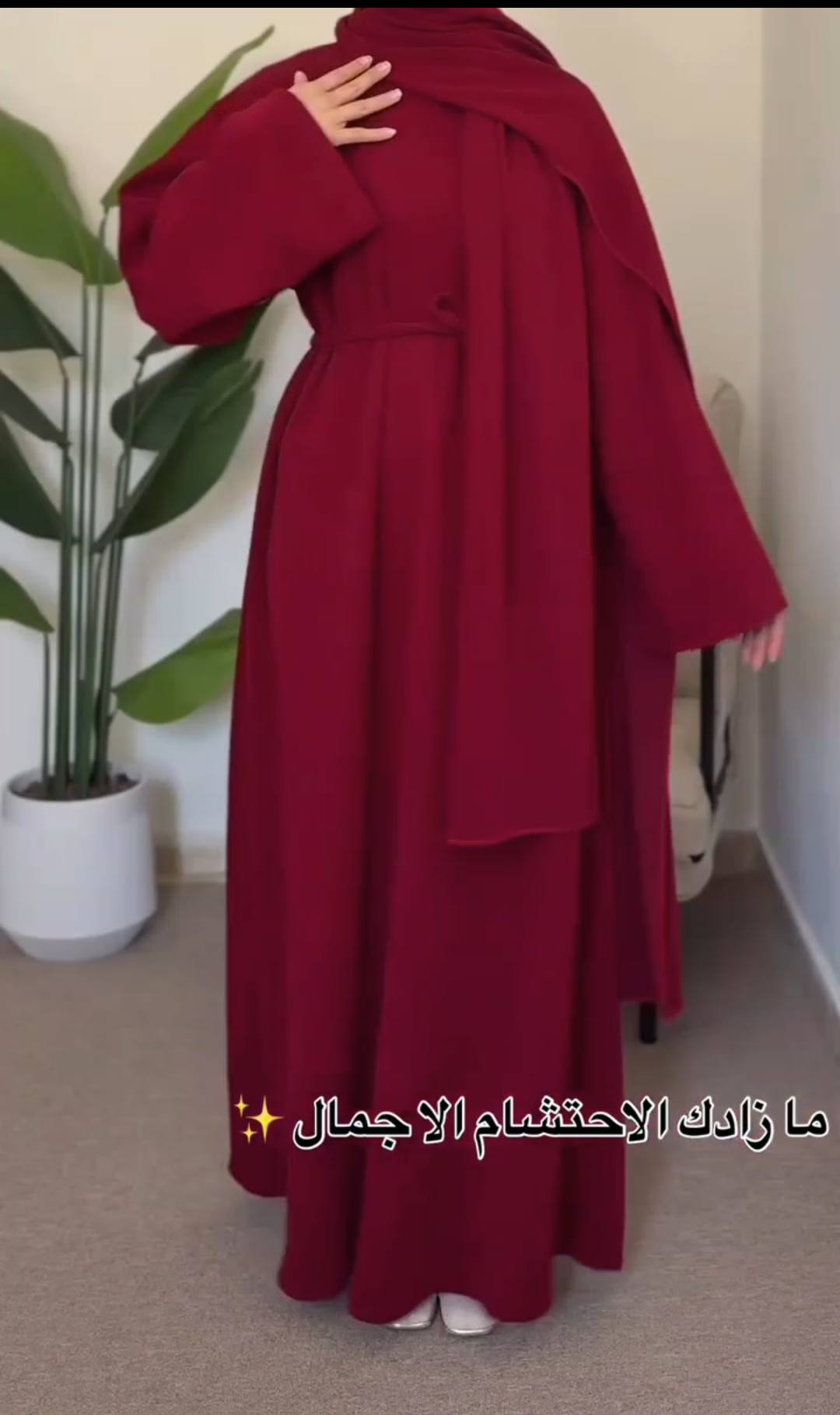 يأتي بتصميم واسع ومريح يناسب المحجبات، ومعاه سكارف طويل وحزام للوسط من نفس الخامة لإطلالة متكاملة تعكس ذوقك الراقي.